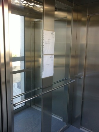 Die Kabine des Aufzuges links